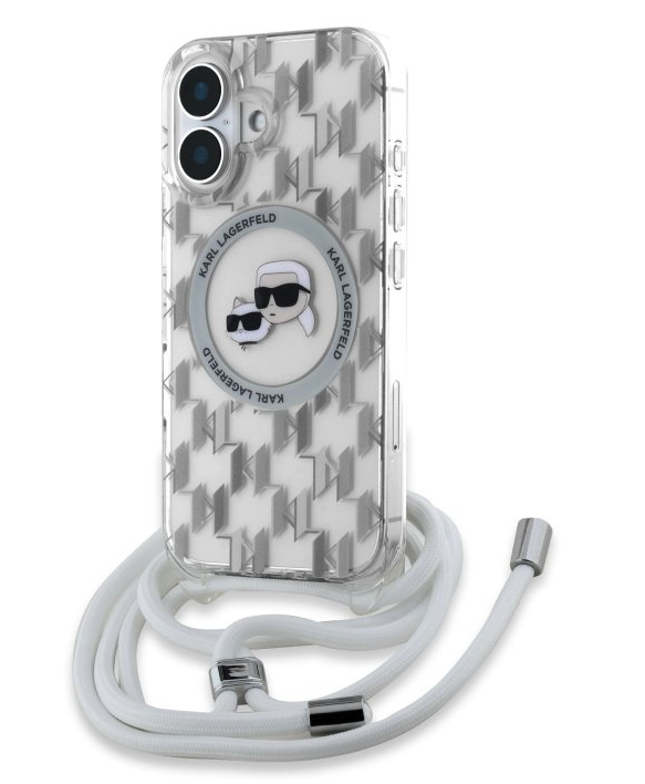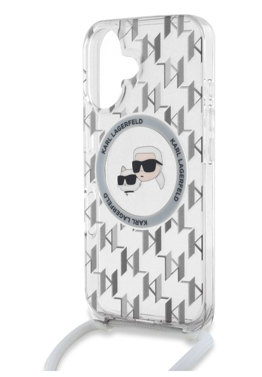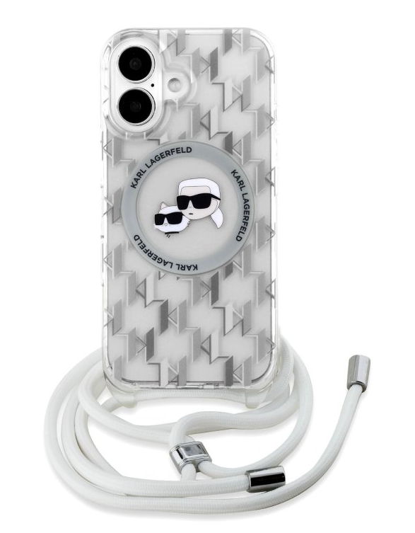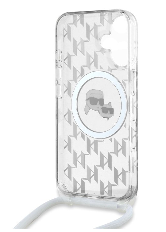 Karl Lagerfeld IML Monogram Crossbody K&CH Heads MagSafe zadný kryt pre iPhone 16 – transparentná