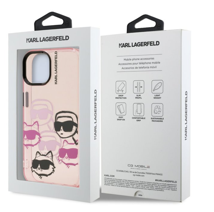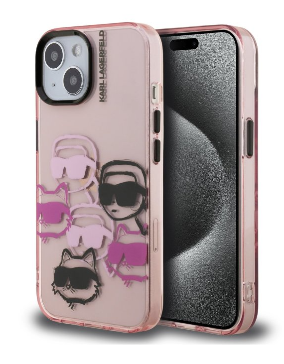 Karl Lagerfeld IML Multi K&CH Heads zadný kryt pre iPhone 15 – ružová