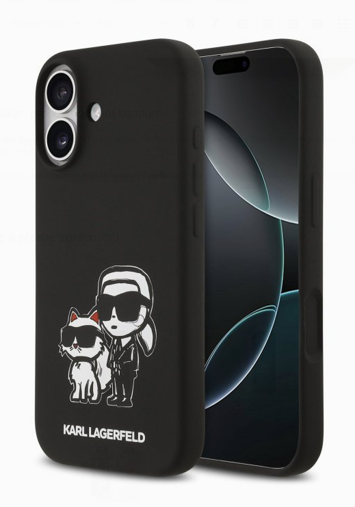Dominantou designu je jemný náčrt Karla Lagerfelda a jeho mačky Choupette, ktorý dodáva krytu osobitý charakter. Motív pôsobí decentne, moderne a perfektne ladí s čistými líniami iPhonu.