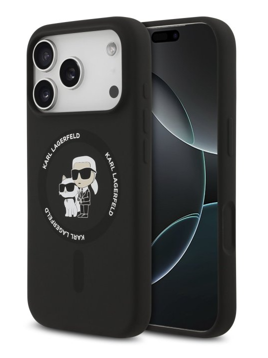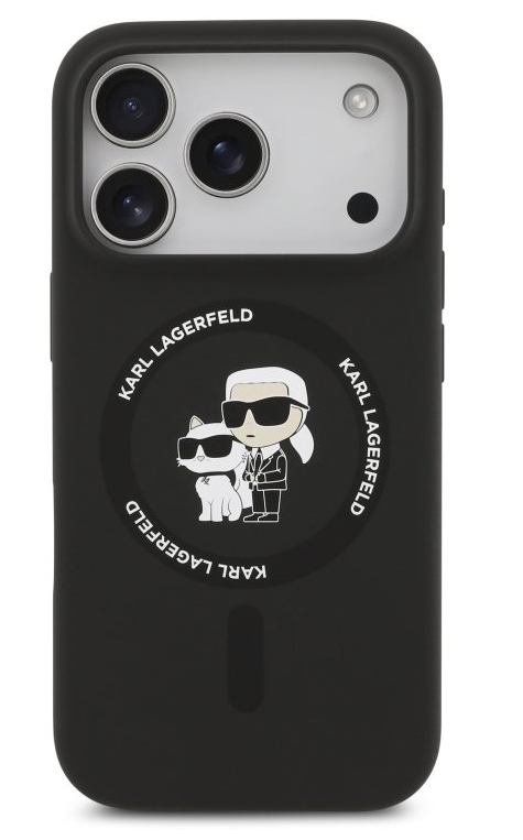 Karl Lagerfeld Liquid Silicone Karl and Choupette MagSafe zadný kryt pre iPhone 17 Pro – čierna