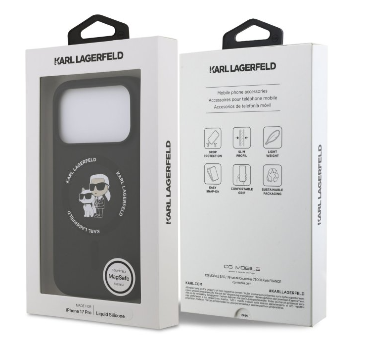 Karl Lagerfeld Liquid Silicone Karl a Choupette MagSafe je prémiový zadný kryt navrhnutý pre užívateľov, ktorí chcú svoj iPhone chrániť štýlovo a bez kompromisov. Ikonické vyobrazenie Karla Lagerfelda a jeho mačky Choupette dáva krytu okamžite rozpoznateľný vzhľad, ktorý skvele doplní každý outfit.