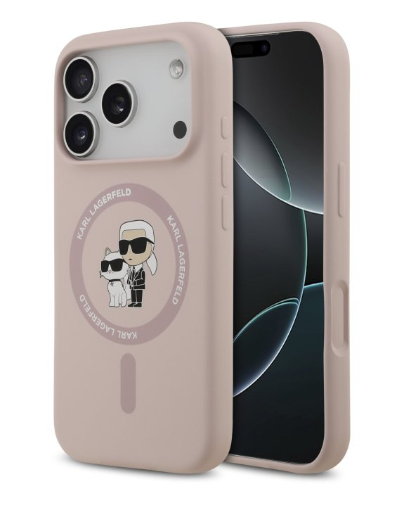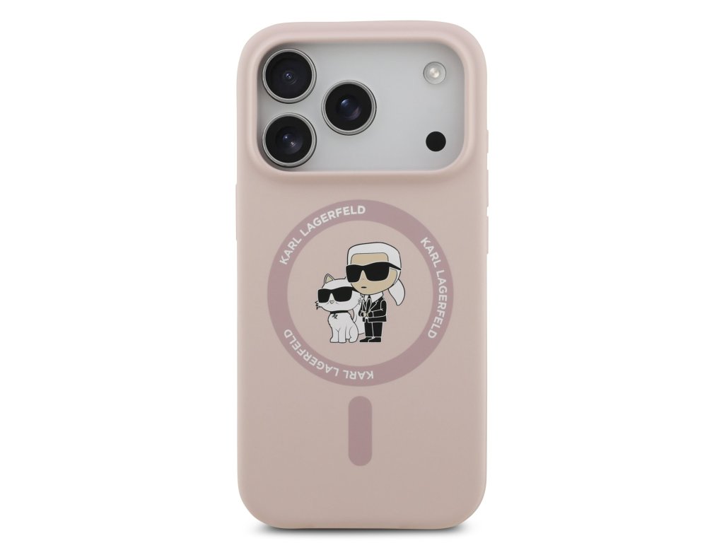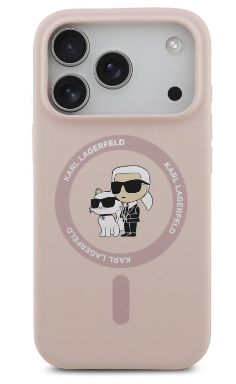Karl Lagerfeld Liquid Silicone Karl and Choupette MagSafe zadný kryt pre iPhone 17 Pro – ružová