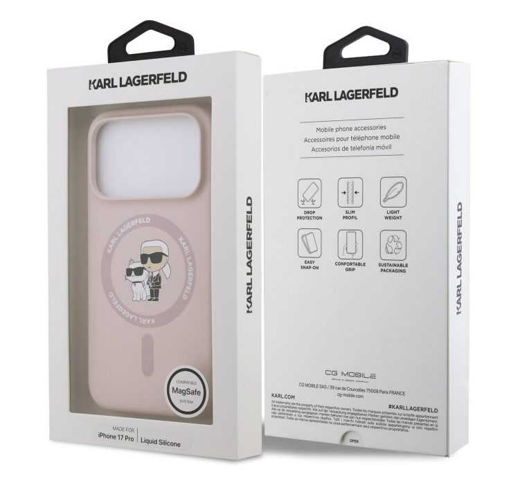 Karl Lagerfeld Liquid Silicone Karl a Choupette MagSafe je prémiový zadný kryt navrhnutý pre užívateľov, ktorí chcú svoj iPhone chrániť štýlovo a bez kompromisov. Ikonické vyobrazenie Karla Lagerfelda a jeho mačky Choupette dáva krytu okamžite rozpoznateľný vzhľad, ktorý skvele doplní každý outfit.
