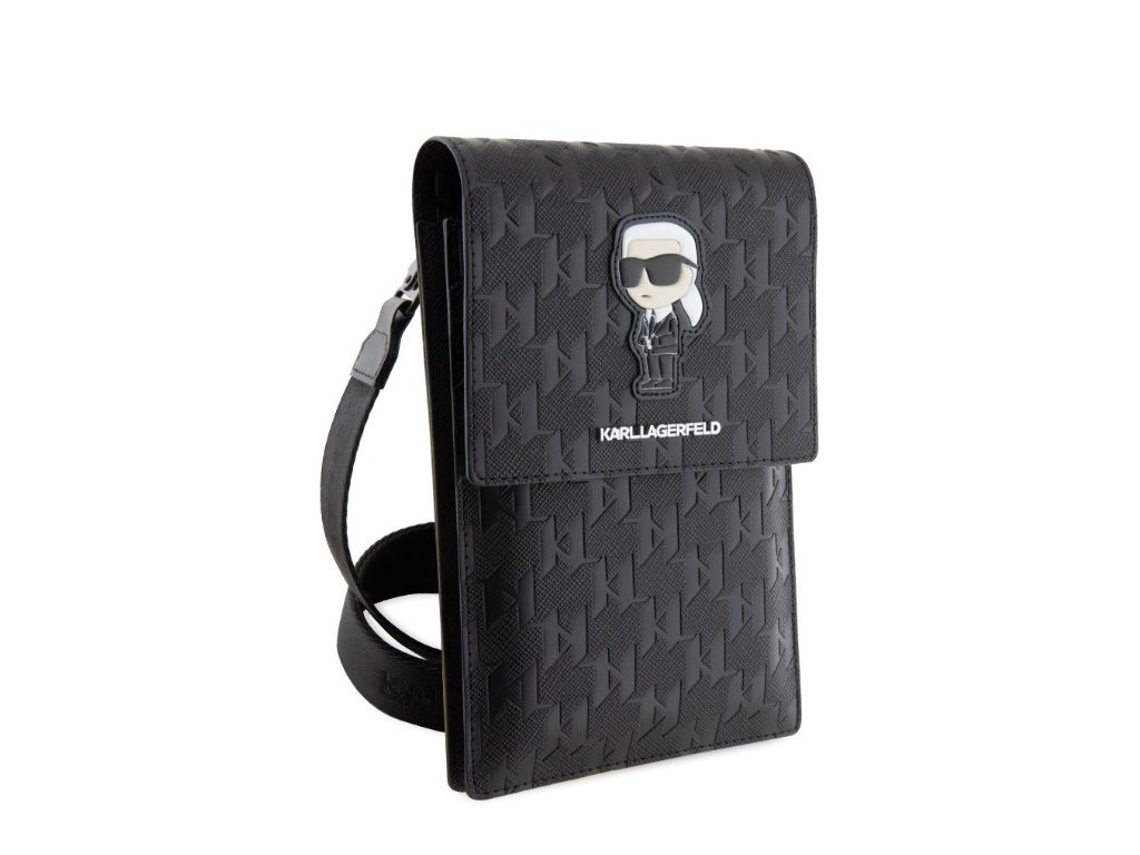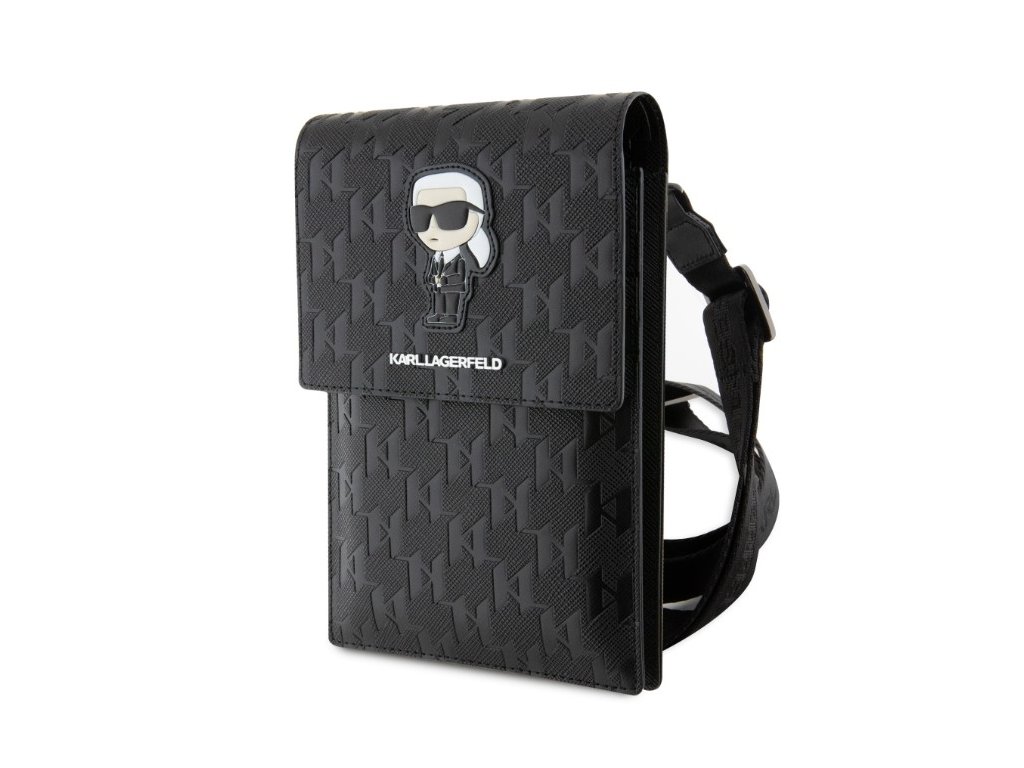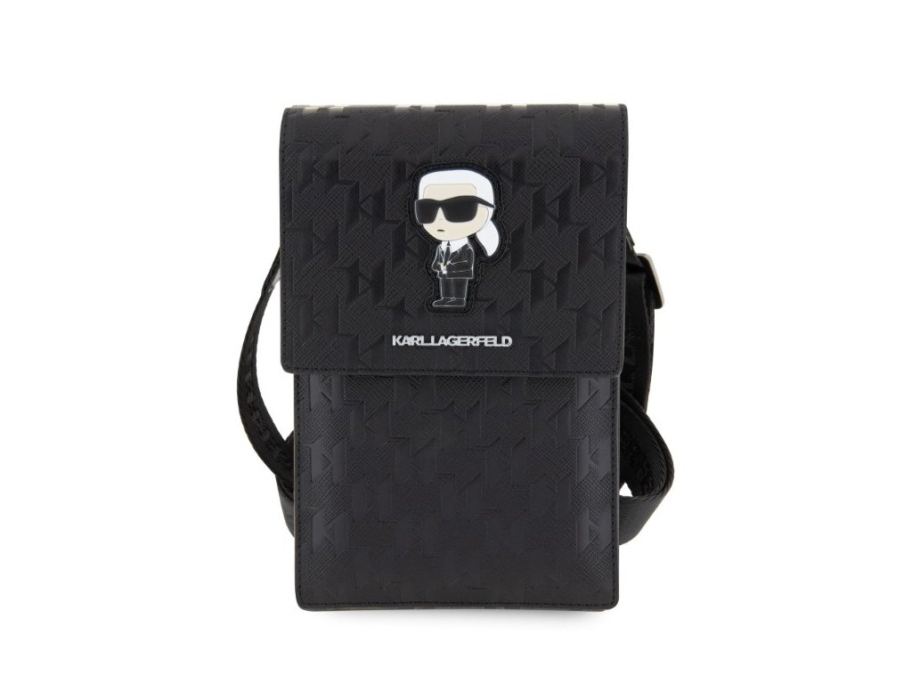 Karl Lagerfeld Saffiano Monogram Ikonik NFT Taška na Telefón Black