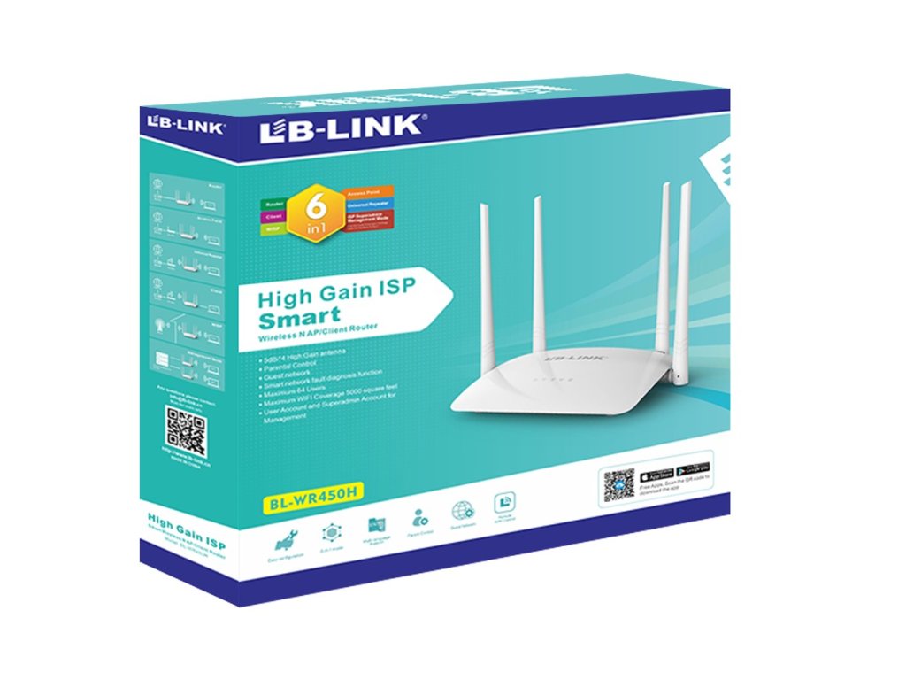 LB-Link Wi-Fi router 300 Mbps, 4 antény (BL-WR450H) – biela