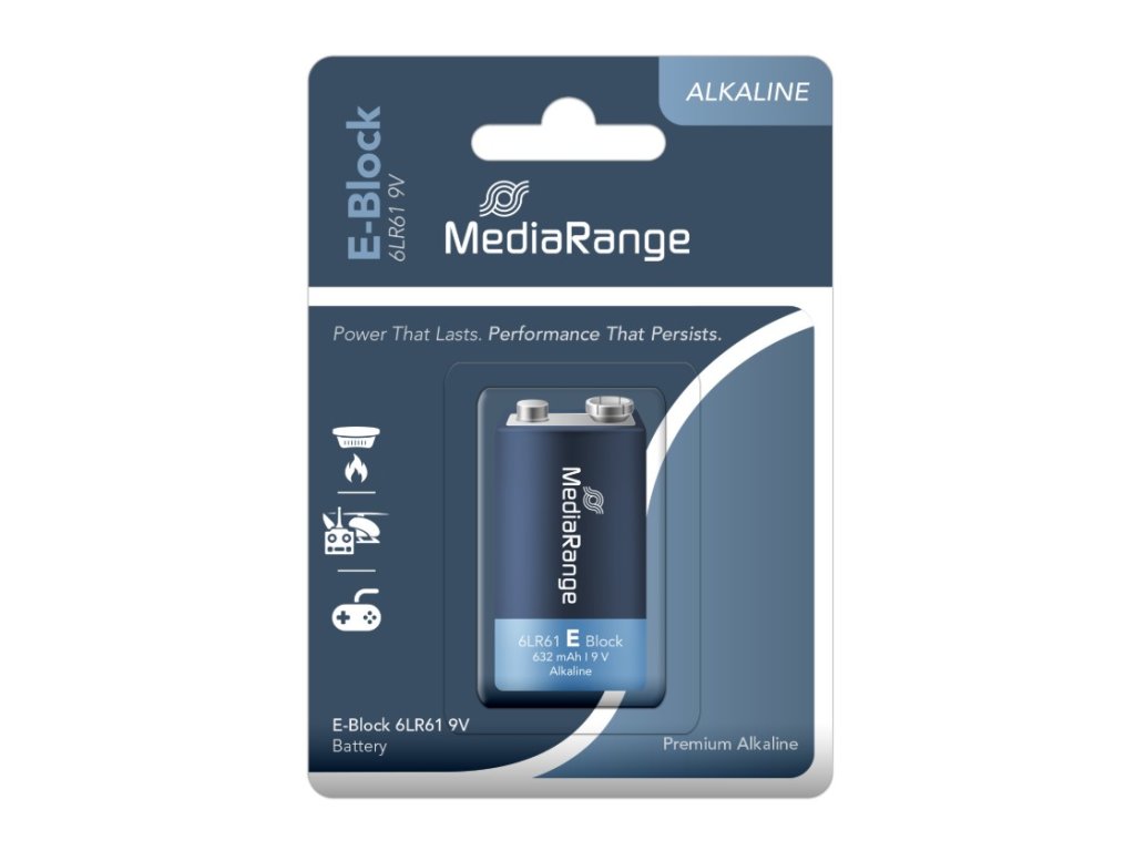 MediaRange Premium alkalická batéria E-Block, 6LR61, 9V