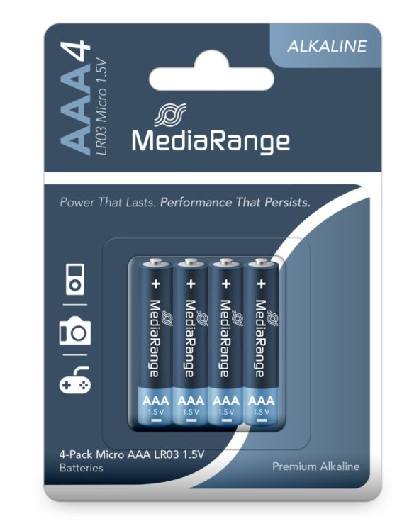 MediaRange Premium alkalické batérie Micro AAA, 1,5V – 4ks