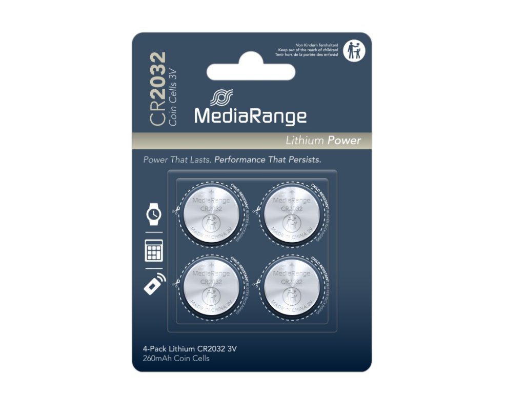 MediaRange Premium lítium batéria Coin Cells, CR2032, 3V – 4ks