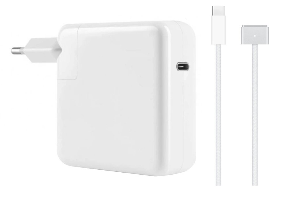 Napájací adaptér pre Apple MacBooky MagSafe 3 s výkonom 140W, predstavuje spoľahlivé a výkonné riešenie pre rýchle nabíjanie kompatibilných zariadení. Vďaka podpore technológie USB Power Delivery zaisťuje efektívny prenos energie a stabilný výkon.