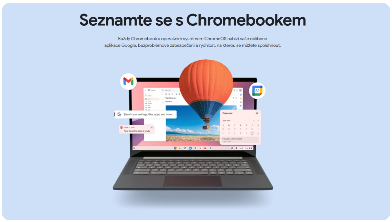 Zapnete a idete. ChromeOS je navrhnuté pre jednoduché používanie – systém sa automaticky aktualizuje na pozadí a obsahujevstavanú ochranu proti vírusom a malwaru, Takže sa nemusíte spoliehať na externý antivírus. Samozrejmosťou je prihlásenie cez účet Google, integrácia služieb (Disk, Dokumenty, Fotky…) a prístup do Google Play pre ďalšie aplikácie a hry.