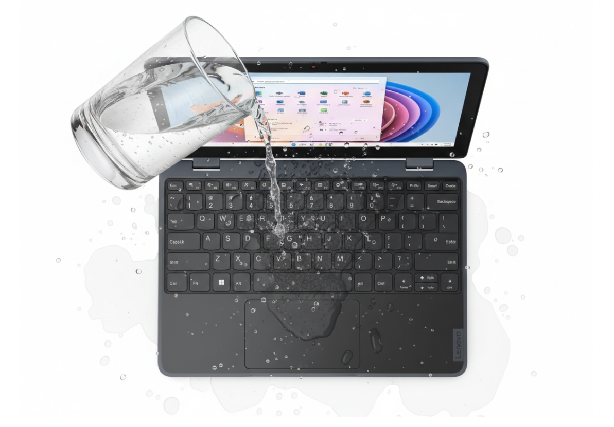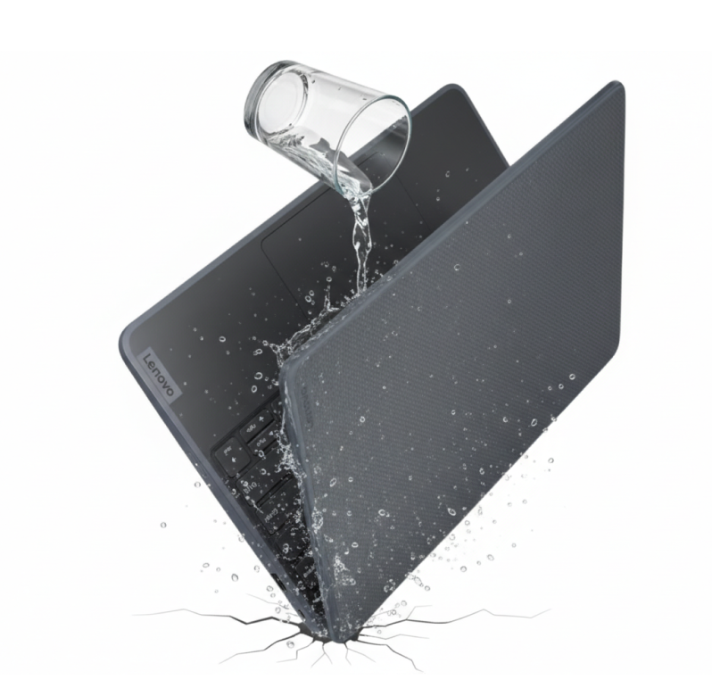Navrhnutý pre nárazy, poliatie aj tlak. Konštrukcia spĺňa MIL-STD-810H a Lenovo EDU/DuraSpec testy – vrátane odolnosti na pády (napr. 76 cm na betón), rozliatie (až 360 ml) a zaťaženie veka až 60 kg. Zosilnené porty a pánty pomáhajú udržať notebook spoľahlivý aj pri častom prenášaní medzi triedami.
