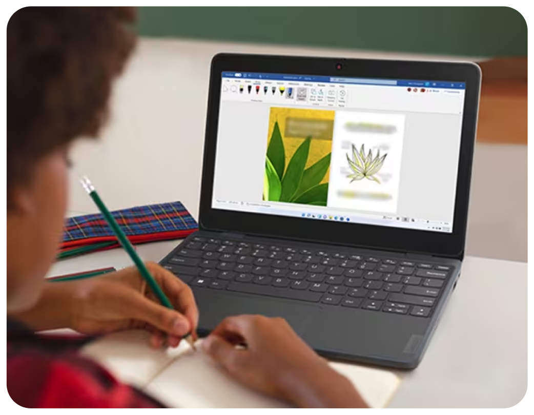 Školský ťahúň, ktorý sa nezľakne reality. Lenovo 100w Gen 4 je stavaný na každodennú prevádzku – časté prenášanie, rýchle presuny, drobné nehody aj intenzívne používanie. Vyniká odolnou konštrukciou podľa MIL-STD-810H a vzdelávacích štandardov Lenovo DuraSpec, antireflexným displejom, premyslenou ochranou súkromia a konektivitou, ktorá zvládne učebňu, domáci stôl aj online výučbu.