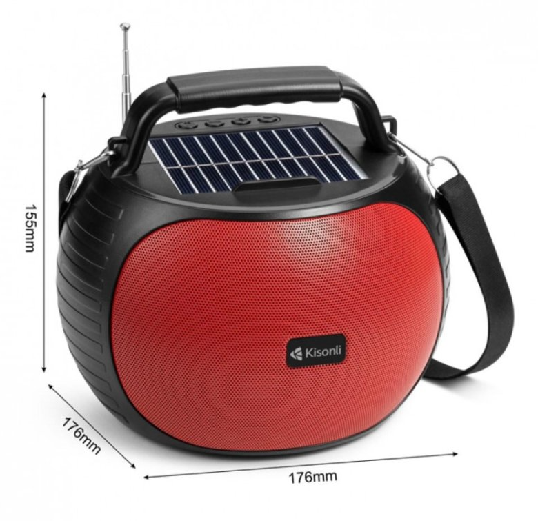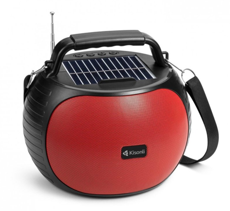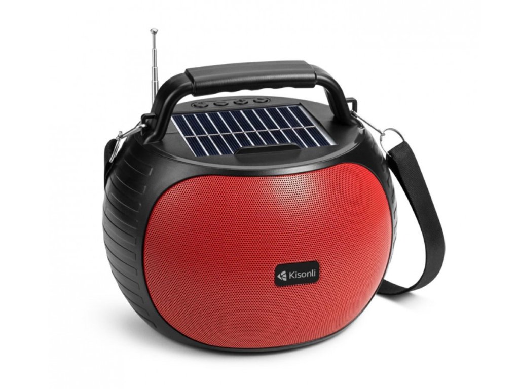 Solárny reproduktor Kisonli SC-22, Bluetooth, USB, SD, AUX – červená