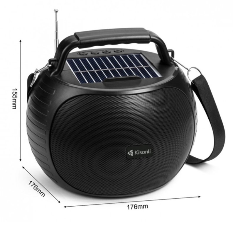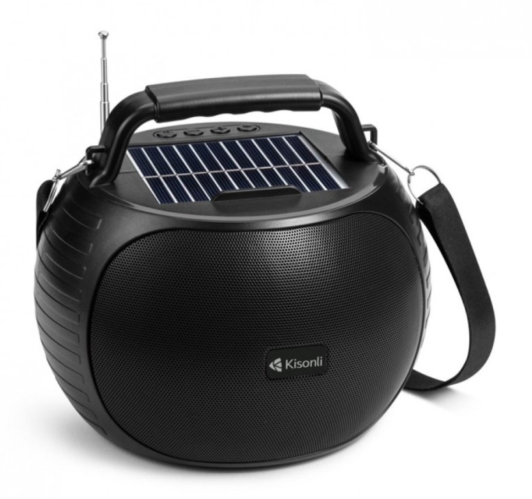 Solárny reproduktor Kisonli SC-22, Bluetooth, USB, SD, AUX – čierna