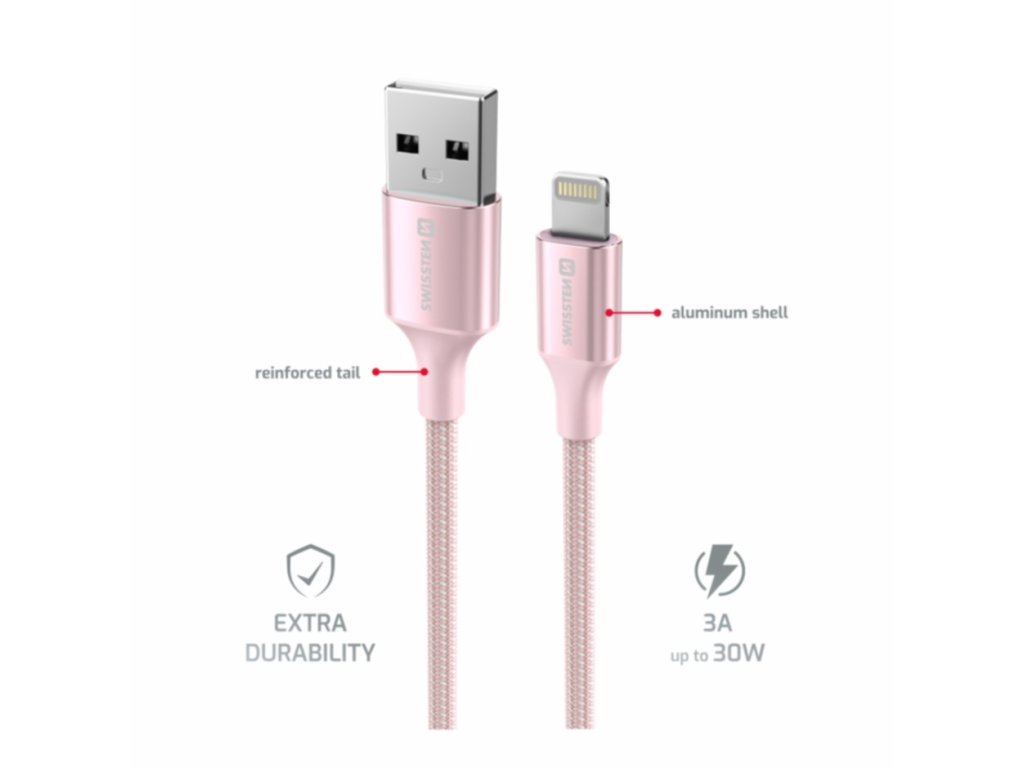 Swissten Dátový Kábel Textile Ii USB / Lightning, 1.5m - ružová