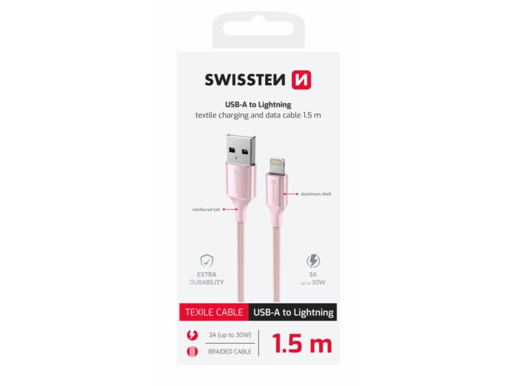 Swissten Dátový Kábel Textile II je štýlový a kvalitný dátový kábel, ktorý slúži na pripojenie zariadení s Lightning konektorom, ako sú iPhone, iPad alebo iPod, k USB portu na nabíjanie a prenos dát. Tento kábel je navrhnutý tak, aby vydržal dlhodobé používanie a vďaka textilnému povrchu je odolný voči mechanickému poškodeniu a zamotaniu.