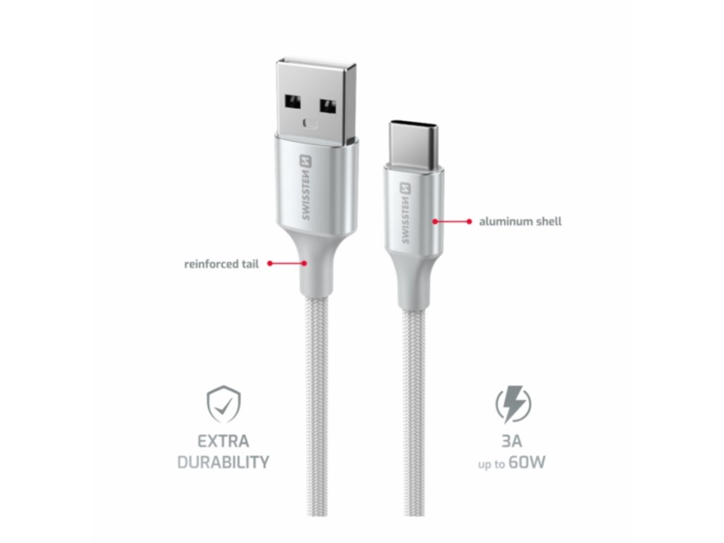 Swissten Dátový Kábel Textile Ii USB / USB-C, 1.5m - biela