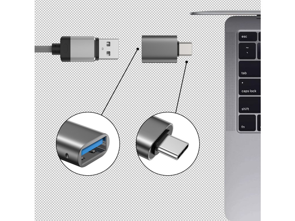 - Redukcia slúži na pripojenie zariadení s USB-A do USB-C