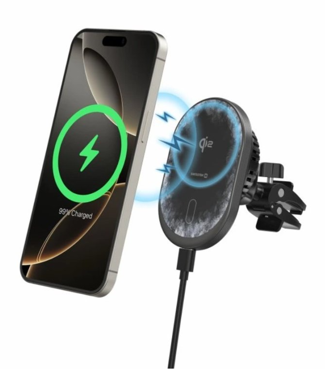 Moderný držiak s bezdrôtovým nabíjaním Qi2 až 15 W – Swissten MagRide je spoľahlivým pomocníkom pre každého vodiča, ktorý chce nabíjať telefón pohodlne, rýchlo a bez káblov. S novým štandardom Qi2, podporou MagSafe a vysokým výkonom až 15 W je ideálny pre iPhone aj Android zariadenia.