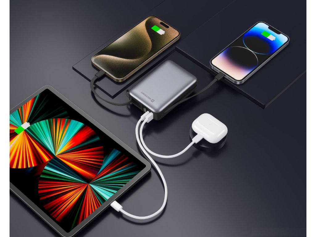 Potrebujete výkonnú a všestrannú powerbanku, ktorá zvládne nabíjať viac zariadení súčasne a eliminuje nutnosť nosiť ďalšie káble? SWISSTEN POWER BANK 20&mb;
