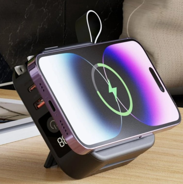 Vďaka tomu je možné nabíjanie viacerých zariadení súčasne – telefón, hodinky aj slúchadlá – z jedného kompaktného zariadenia. Pri paralelnom nabíjaní sa výkon inteligentne rozdeľuje, aby bola zaistená bezpečnosť aj stabilita.