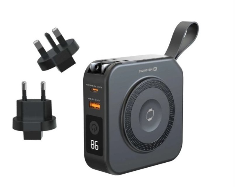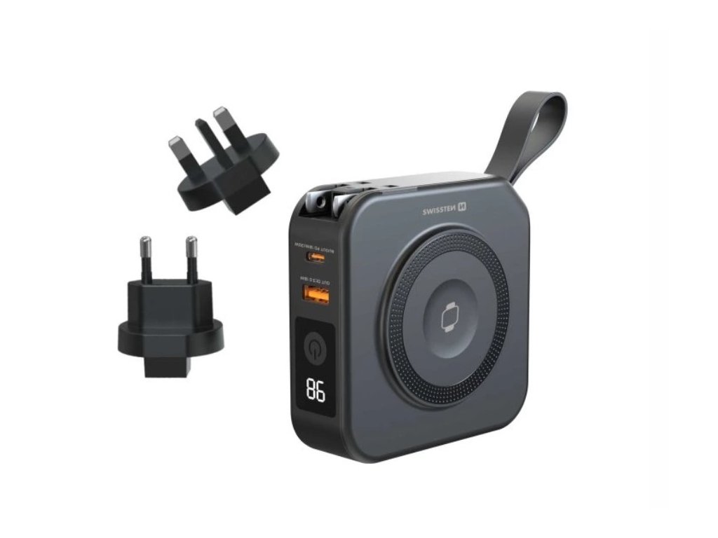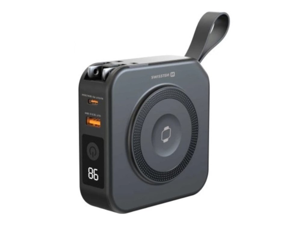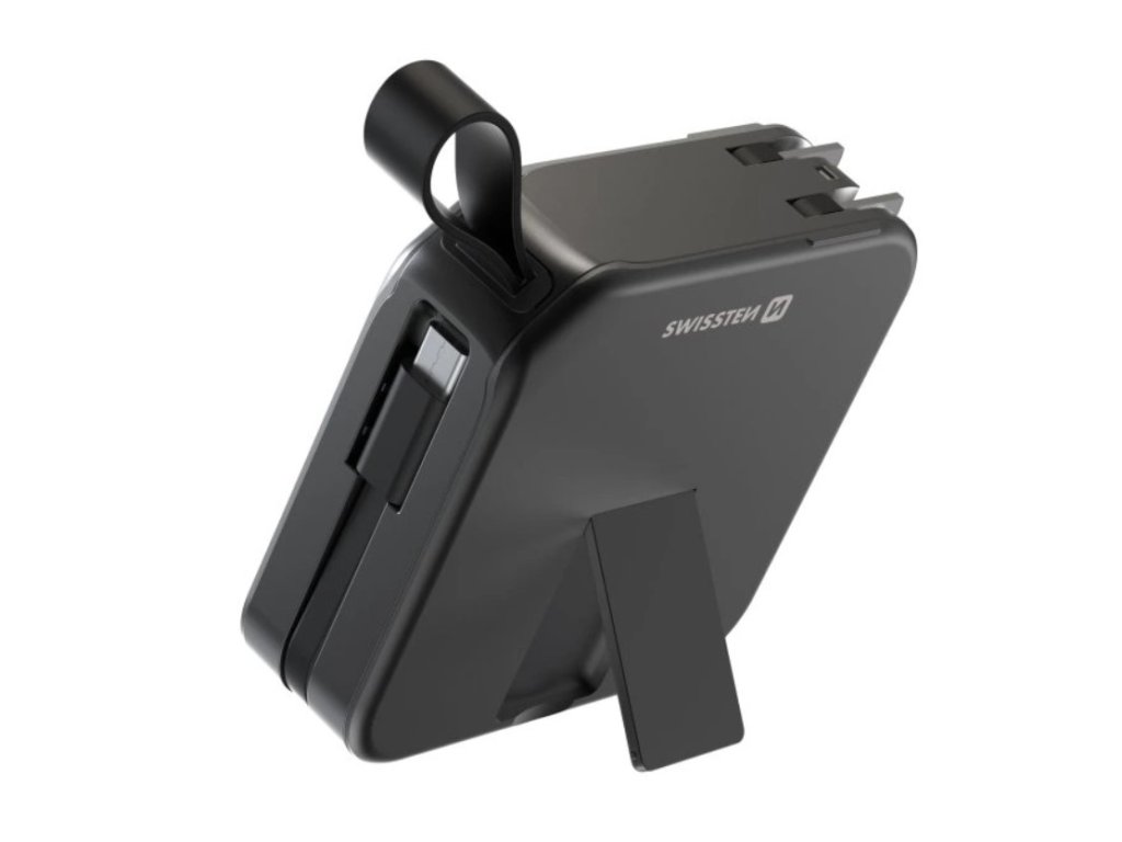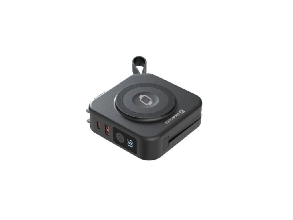 Swissten All-in-One Pro nie je len obyčajná powerbanka. Ide o komplexné nabíjacie riešenie v jednom kompaktnom zariadení, Ktoré kombinuje powerbanku, sieťovú nabíjačku, bezdrôtové nabíjanie aj vstavaný kábel. Vďaka tomu nahrádza hneď niekoľko adaptérov, káblov a nabíjacích podložiek, ktoré by ste inak museli nosiť so sebou.