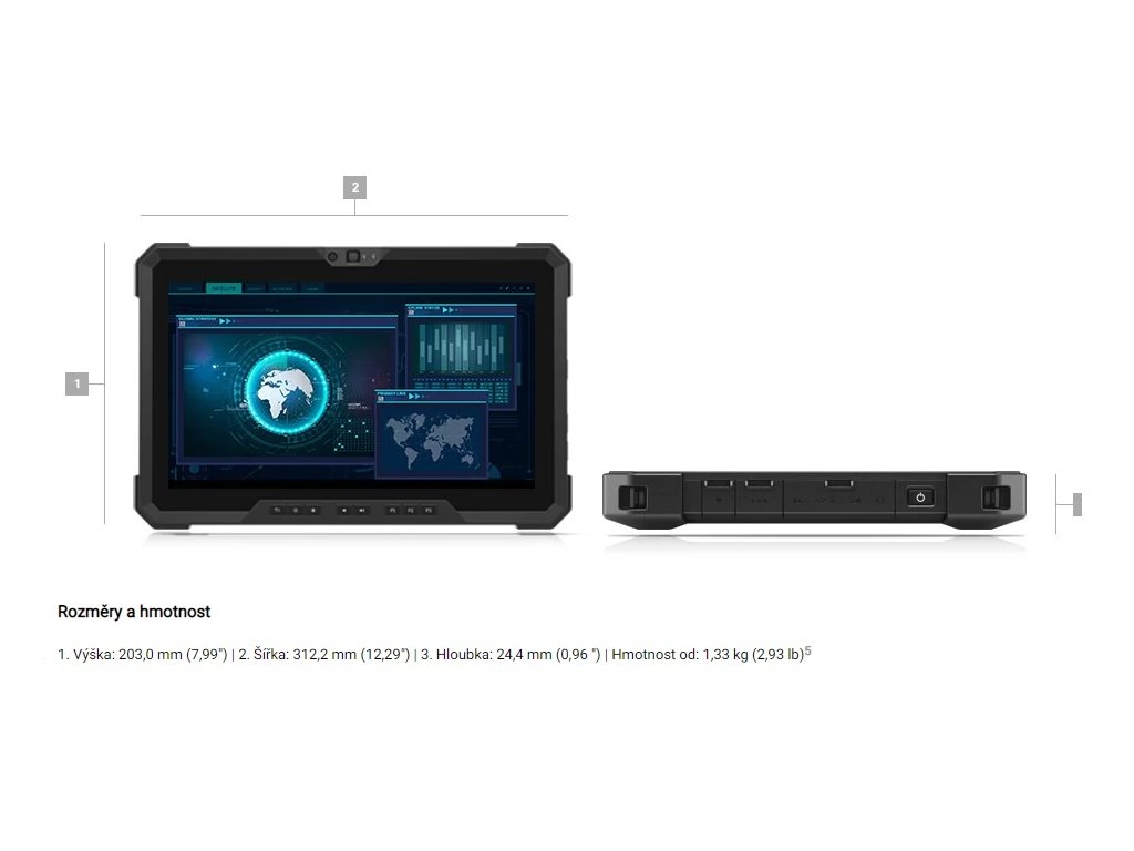 DELL Latitude 7220 Rugged Extreme tablet Latitude 7220 Rugged Extreme sa testuje na pád z výšky 1,2 mm a teplotný rozsah -28 °C až 62 °C a má krytie IP-65 pre maximálnu ochranu proti prachu, nečistotám . Pomocou dvoch batérií vymeniteľných počas prevádzky a lepšieho riadenia teploty tabliet Latitude Rugged Extreme 7220 prináša špičkový výkon a zároveň ponúka odolnosť na vojenskej úrovni.