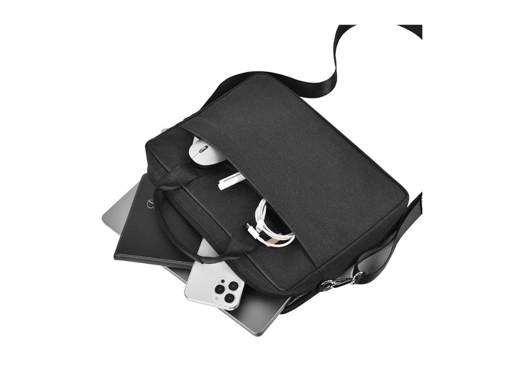 Priestranný Interiér: Taška ponúka dostatok miesta pre váš notebook a ďalšie príslušenstvo, ako je nabíjačka, myš a káble.