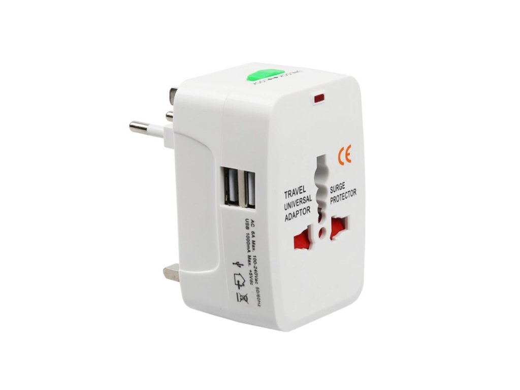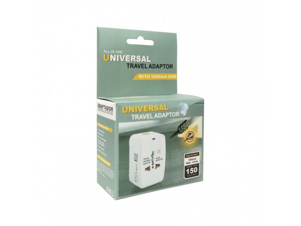 Univerzálny cestovný adaptér - 2xUSB, 1.0A, EU/US/UK/AU, 220V, Biela