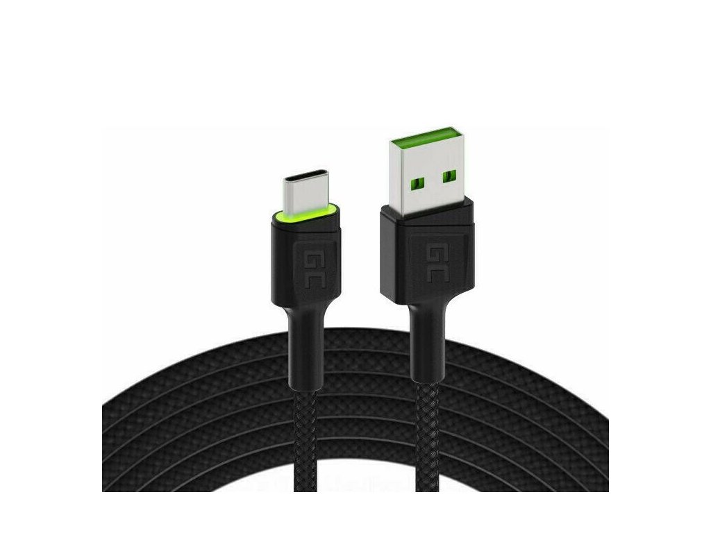 USB kábel Green Cell KABGC13 USB-A - USB-C 2m, čierny, zelené podsvietenie