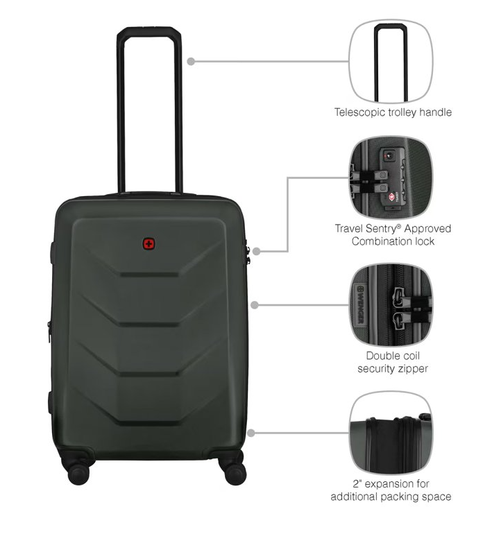 - Typ: stredný škrupinový kufor (Medium Hardside Case)